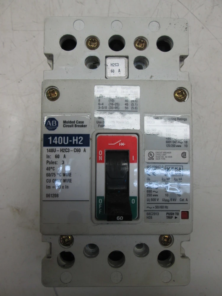 Allen Bradley 140U-H2 3 Pole 60A 480V H-Frame Moulded Case Circuit Breaker