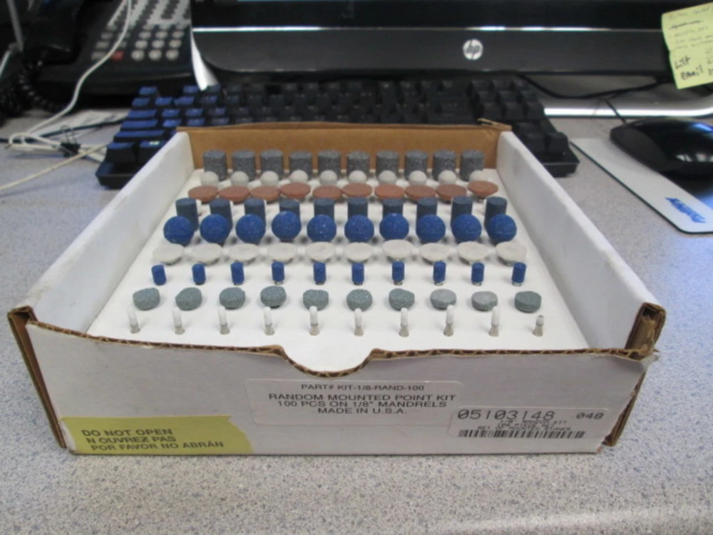 <p>Random Mounted Point Kit 100pc On 1/8" Mandrels Made In the USAMade In The USA100 Piece Random Mandrel Kit For Carving And Shaping 1/8" ShaftKit Is Slightly Used, Hardly NoticeablePart #: KIT-1/8-RAND-100 Asset In Stock And Available Immediately</p><br/><br/><p></p>