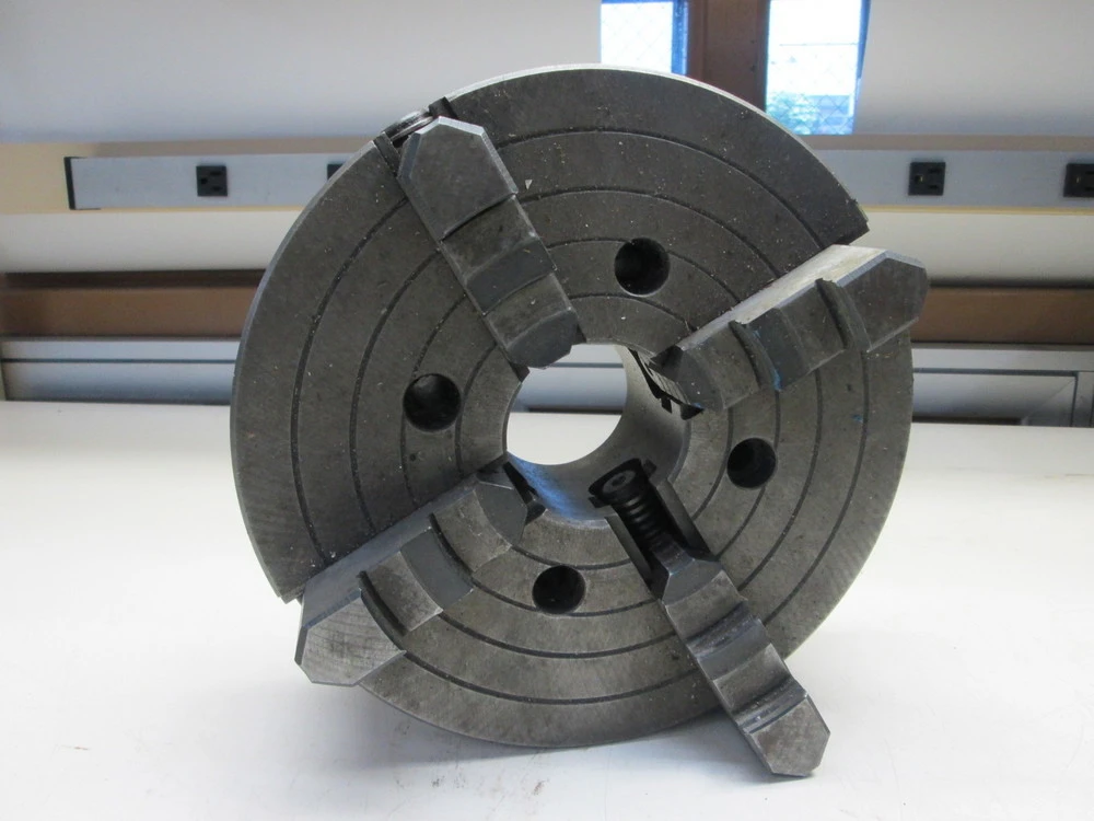 10" 4-Jaw Chuck Non Self Centering W/2.5" Bore In Excellent Condition Plate Type Install