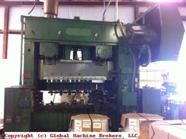 <p>* Minster Brake Clutch Combo<br/>Info:<br/>Die holders are 4.50 ID x 4.25 ID shoulder x 5.50” tall<br/>Machine has a 2 row mechanical stagger feed<br/>2 Blank die holders – one regular and one huge<br/>Bronze hand scraped gibbs<br/>Press height:<br/>As is on shop floor = 148” tall including flywheel guards and Anti Vibration feet<br/>No guard = 130” tall<br/>No guard, no feet risers = 125” tall<br/>Probably can ship out as one piece at 10’6” tall.<br/>Weights 40,000 pounds. Crane had a scale built in when they brought it in.<br/>It will cost $2500 just for the crane to load it in an open top container<br/>It will cost $2500 for the riggers to get it to the garage door to be craned out.<br/>Those are preliminary rigging numbers. I would get real costs but they should be close.</p>