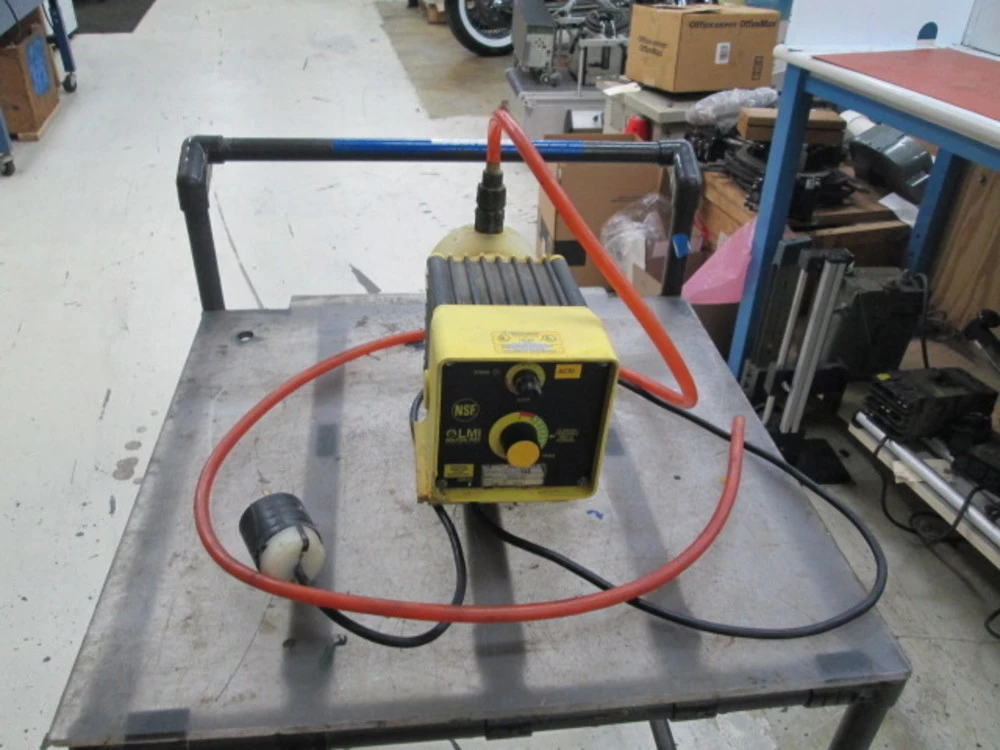 <p>LMI Milton Roy C111-72S Pump Metering, 2.5 GPH, PVC Head, TFE Diaphragm Make: LMI Milton RoyModel: C111-72SSerial No: 990921027Condition: Used, Overall In Good Shape, Should WorkThis Basic LMI Pump Drive has seperate knobs for manual stroke frequency and stroke length adjustment providing a large turndown for chemical feed dosing. features manual control only of this solenoid diaphragm metering pump for the basic chemical dosing system <br/>Max GHP: 2.5 Max PSI: 150.0120VAC 50/60 Hz3.5 AmpsPVC HeadTFE Diaphragm4FV1/2" Od Tubing1 Ball checksComes With Everything Shown Asset In Stock And Available Immediately</p><br/><br/><p></p>