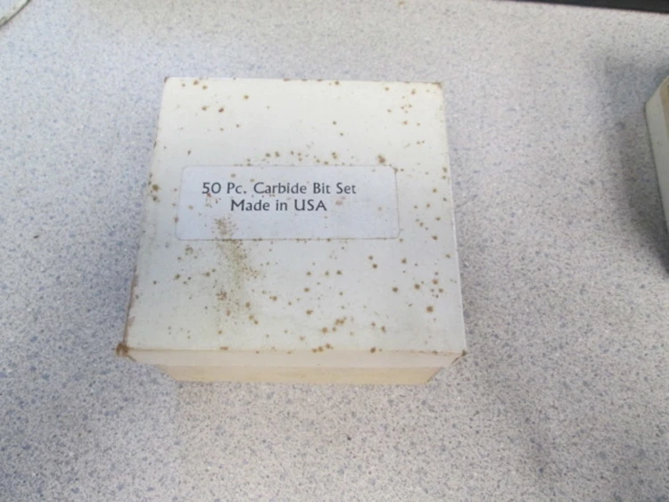 <p>50 Piece Carbide Bit Set T244 Assorted Drills, Routers And Micro scribers 50 Piece Assortment Of Drill Bits For Micro Operations ***#59 is broken in this set***Made In The USAOverall IN Great Shape<br/>Bits Are Still Sharp And Usable Asset in stock And Available immediately <br/>Price is for the whole box</p><br/><br/><p></p>