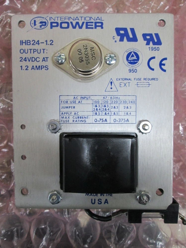 <p>&nbsp;&nbsp;&nbsp;&nbsp;Make: International Power<br/>&nbsp;&nbsp;&nbsp;&nbsp;Model: IHB24-1.2<br/>&nbsp;&nbsp;&nbsp;&nbsp;For Use At: 100,120,220,230/240<br/>&nbsp;&nbsp;&nbsp;&nbsp;Input Hz: 47-63<br/>&nbsp;&nbsp;&nbsp;&nbsp;Max Fuse Rating: 100,120V At 0.75 Amps/ 220,230/240V At 0.375A<br/>&nbsp;&nbsp;&nbsp;&nbsp;Output: 24 Vdc At 1.2 Amps<br/>&nbsp;&nbsp;&nbsp;&nbsp;Made In Usa!<br/>&nbsp;&nbsp;&nbsp;&nbsp;Asset In Great Overall Condtion<br/>&nbsp;&nbsp;&nbsp;&nbsp;Tested <br/>&nbsp;&nbsp;&nbsp;&nbsp;Sold As Is</p><br/><br/><p></p>