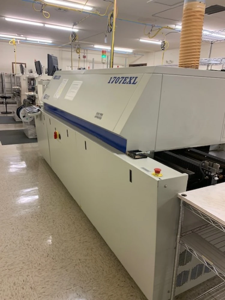 <p>Heller 1707EXL Lead Free Reflow OvenMake: HellerModel 1707EXL208-240 V70 Amps3 Phase50/60 HzLargest heater load 25 AShort Circuit InteruptingCapacity 5000 AManufactured Aug 2008Assembled in ChinaCorporate Headquarters New Jersey USAComing offline in April 2023 and still under power and in use!<br/>Specifications taken from the internet and need to be verified:Heller 1707-EXL Specifications:</p>