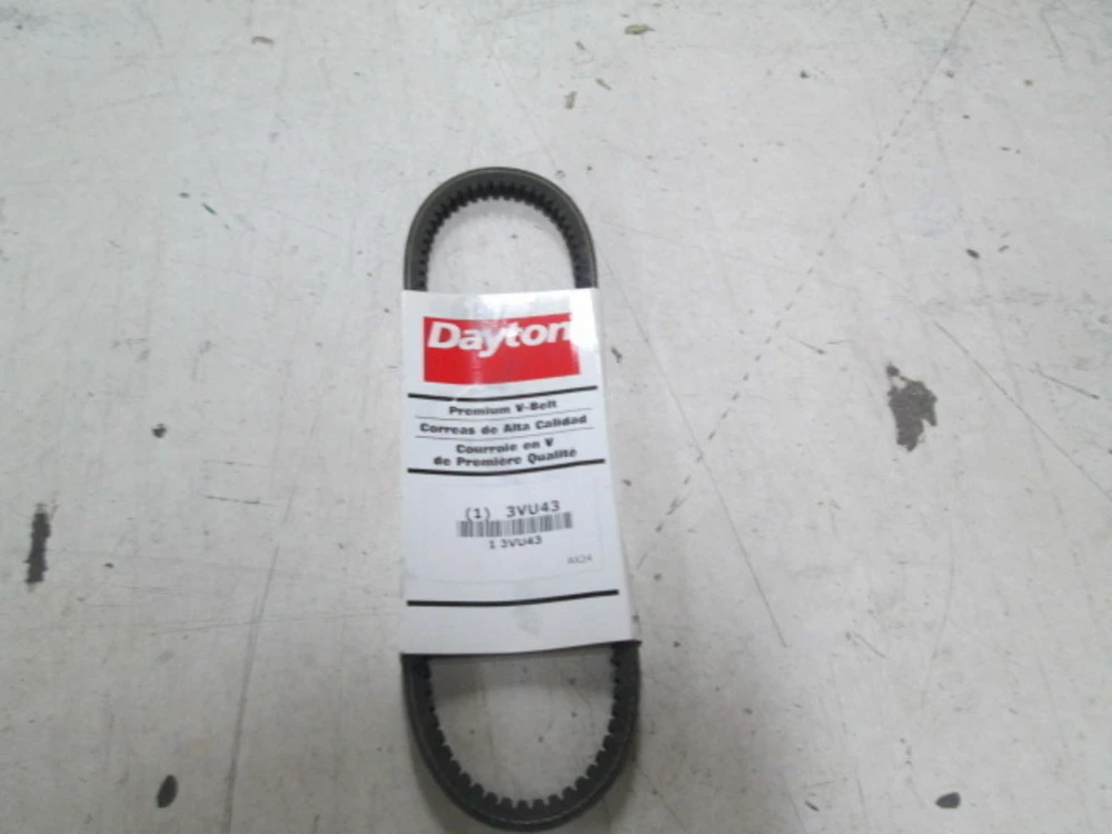 <p>AX24 Cogged V-Belt Outside Length 26", 3VU43Make: DaytonModel: 3VU43Condition: NewSpecifications: V-Belt Type: Cogged V-BeltV-Belt Section: AXIndustry Number: AX24Number Of Ribs: 1Outside Length: 26"Top Width: 1/2" Thickness: 5/16"Material: Fabric Cover, Polyester Cords, Rubber BodyConstruction: Cogged, Raw EdgeTemp Range: -22 deg to 194 deg FResists: Heat, OilDescription:Use This Belt For Medium/High industrial applications that require single or multiple V Belt Drives. Its oil- and heat-resistant and static conductive. Its interchangeable with brands like Browning™, Goodyear®, Carlisle®, Gates®, and Dayco®.2 In Stock $10 Per Belt</p><br/><br/><p></p>