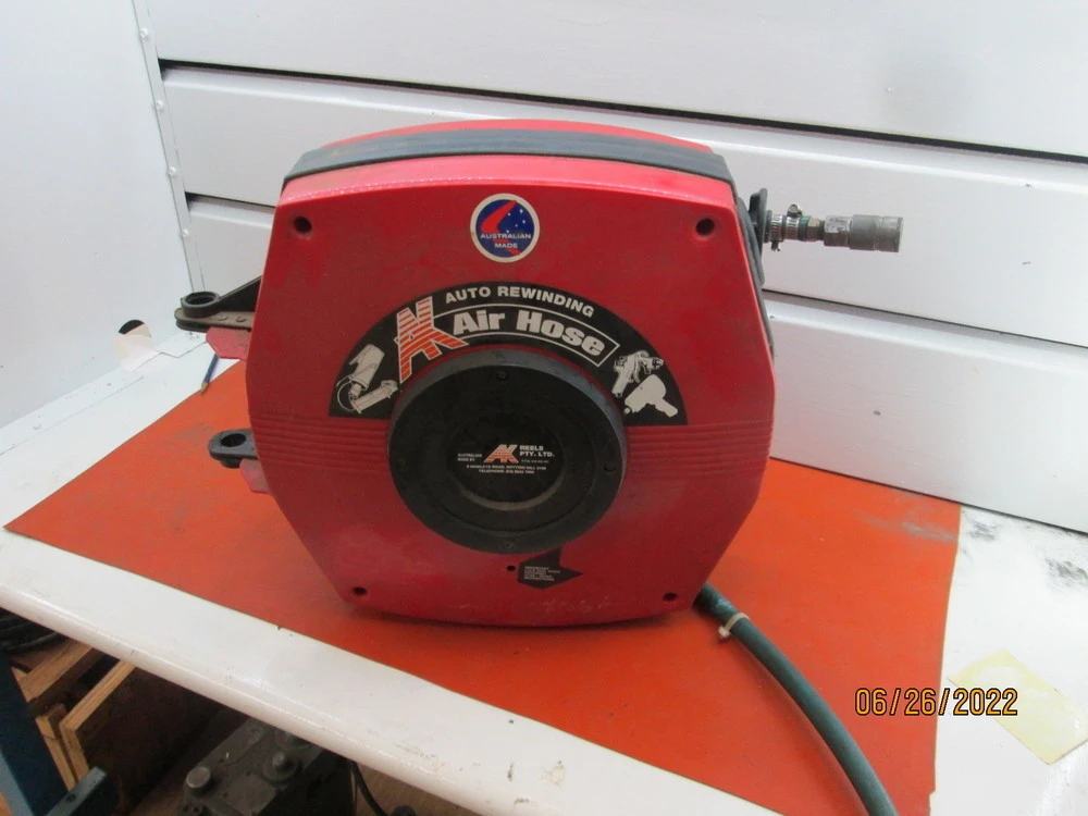 <p>AK Reels Auto Rewinding Air Hose 45 Feet Long Hose 3/4" DiameterMake: AK ReelsModel: 45ftCondition: Used, Overall Working, Tested Pole Mounts 3/4"Hose Diameter: 3/4" 45 Feet Long Can Be Used Fort Many Different Applications Springs In Reel Are In Great Shape They Spring Back Fast And Smooth Asset In Stock And Available immediately</p><br/><br/><p></p>