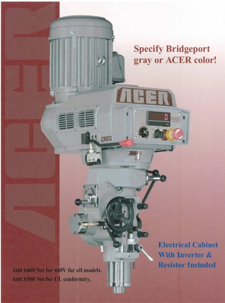 <p>Acer E-Mill 5Hp 0-4500 Rpm Spindle Taper 40 Spindle Replacement Head W/Digital Rpm Meter NEW!</p>