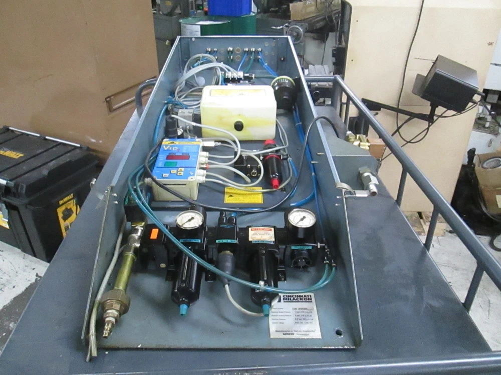 <p>Cincinnati Arrow Vertical Machining Center VMC-1000_LUBE SYSTEM,CIN 1270935AMake: Cincinnati Milacron Model: CIN 1270935ALubrication System For Arrow Vertical Machine VMC 1000Maximum Supply Pressure: 7 Bar (105PSIG)Minimum Working Pressure: 5 Bar ( 75 PSIG)Working Pressure: 5.5 Bar(80 PSI)Control Voltage: 110V AC /24V DCCame From Working Machine, All Parts Are in Working OrderDimensions Of Box: Length: 47.5"<br/>Width: 16.5<br/>Height: 6"Asset In Stock And Available Immediately</p><br/><br/><p></p>