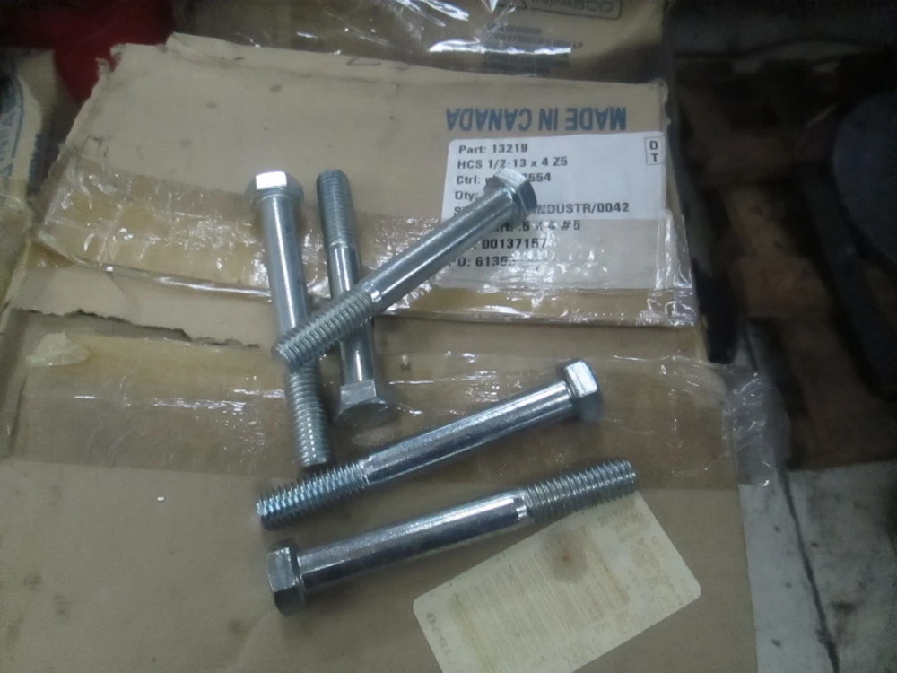 <p>Infasco Hex HD Cap Bolts, Zinc Plated 1/2-13 x 4" New, 600 AvailableMake: InfascoModel: 1/2-13 x 4"Minimum Purchasable Amount: 25 Nuts Are Also Available, Buyers Choice, Price Will Stay The SameThey Are All New Head Height: 5/16"Bolt Length: 4"1/2" Width3/4" Head Width13 TPIRight Hand ThreadZinc PlatedMade In CanadaCourse ThreadThread Length: 1-1/2"Tons of Them Available With Or Without Nuts</p><br/><br/><p></p>