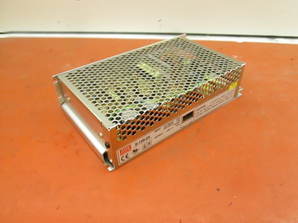<p>Mean Well S-150-24 AC-DC Enclosed Power Supply; Output +24VDC @6.5A LRS-150-24Make: Mean WellModel: S-150-24Replaced By: LRS-150-24Condition: Used, Overall In Great Shape, Came Out Of Working SystemSeries: S-150AC/DCPower Format: Box Type Enclosed Output Power: 150 WattsOutput Voltage: 24Input Voltage: 176 - 264 88 - 132Dimensions: Length: 8"Width: 4.5"Height: 2"Asset In Stock And Available Immediately</p><br/><br/><p></p>