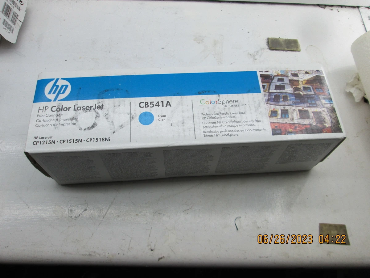 <p>Make: HP<br/>Model: CB541A<br/>Condition: NEW<br/>This Print Cartridge Is Compatible with Models:<br/>CP1215N - CP1515N - CP1518Ni<br/>Color: Cyan<br/>Page Yield: ~1400 Pages<br/>Approximate average composite cyan, yellow, magenta yield based on ISO/IEC 19798. Actual yield varies considerably based on content of printed pages and other factors.<br/>Colorshpere Hp Toner Print Cartridge<br/>Asset in Stock and Available Immediately<br/>Magenta and yellow also available on website</p>