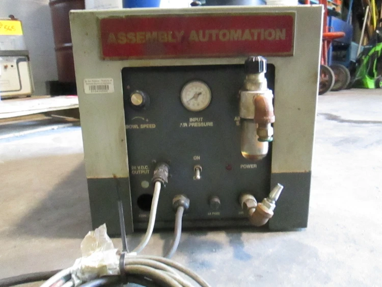 ASSEMBLY AUTOMATION VIBRITORY FEEDER BOWL. 9IN BOWL CLOCKWISE.