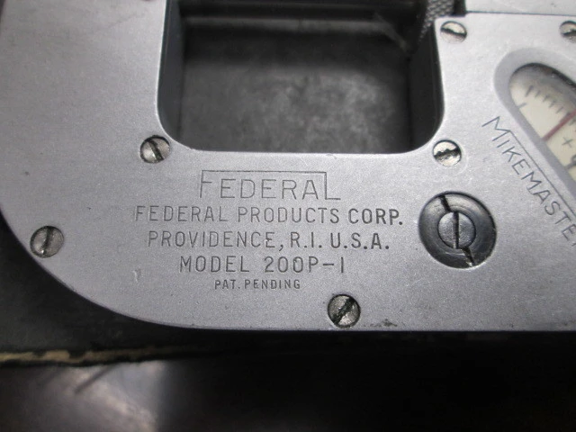 Federal Model 200P-1 Mikemaster Indicating Micrometer 0-1"Range .0001"