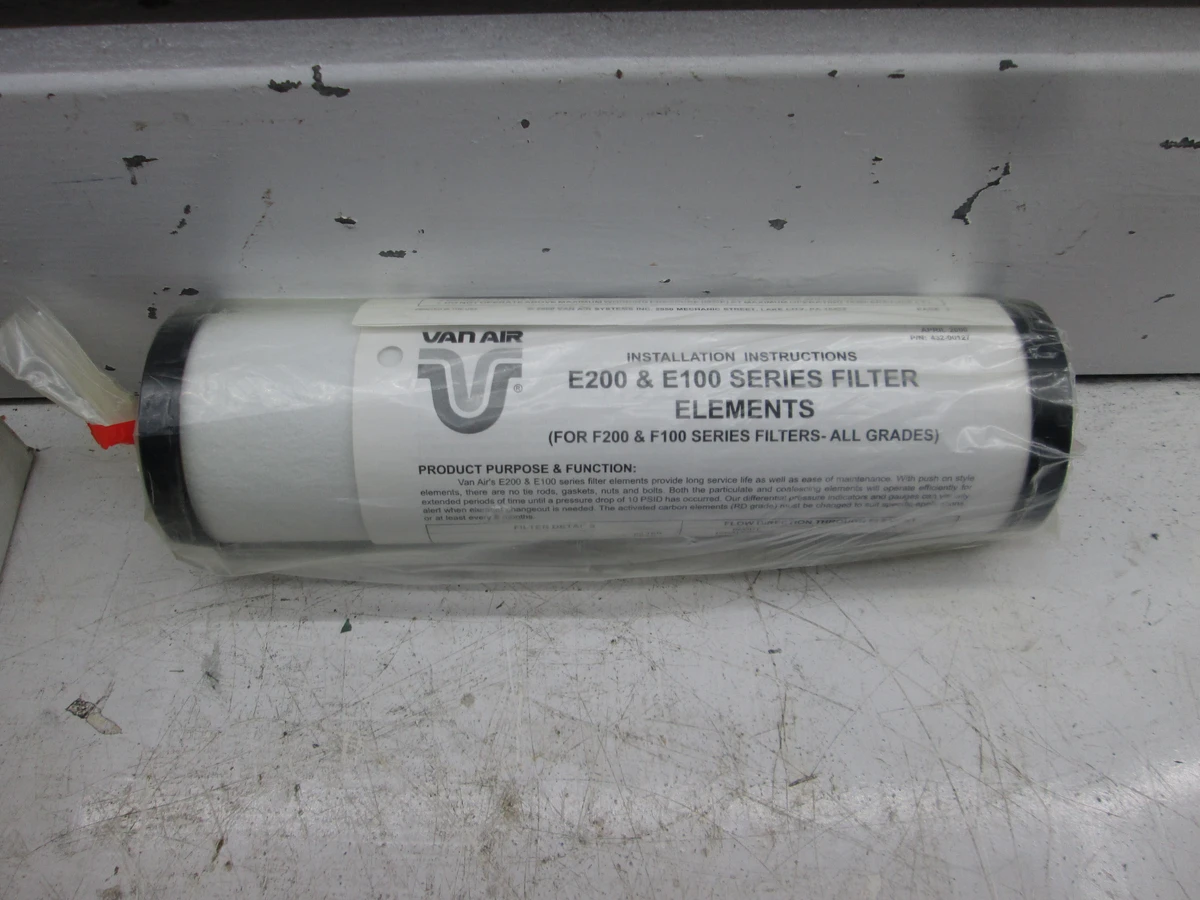 <p>Make: VAN AIR<br/>Model: 26-2075<br/>E200-265-B/RB, Filter Element for F200-265-(*) and F100-225-(*),<br/>1 Micron,<br/>General Purpose Coalescing or Particulate,<br/>Color Code: Red</p>