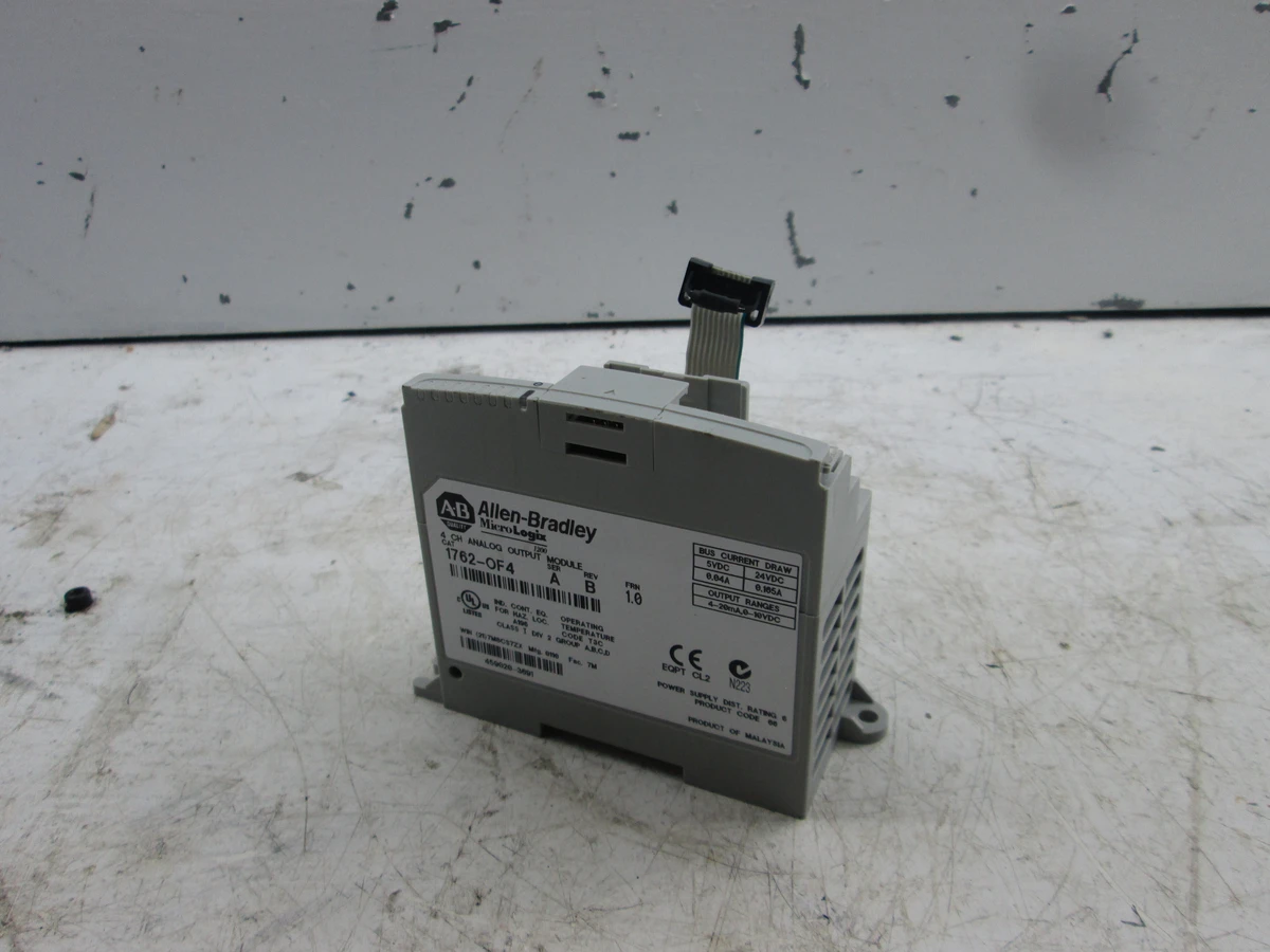 <p>Make: Allen Bradley<br/>Model: 1762-OF4<br/>Condition: Used, Overall In Great Shape. Came Out Of Working Machine<br/>3 Available, List Price Is Per Unit<br/>Analog Output Module<br/>Micrologix 1200<br/>Series A<br/>4 Channel<br/>Single Ended<br/>24VDC<br/>0-10 VDC (0)4-20 MA OUTPUT<br/>Asset In Stock And Available Immediately</p>
