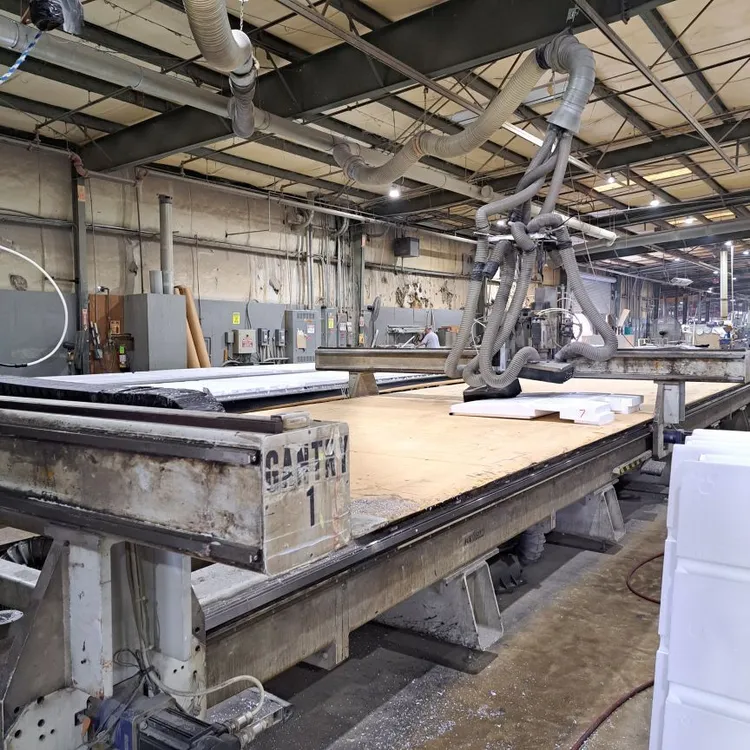 <p>Double Gantry Machine (second Gantry Currently not in operation. Needs Z-axis motor)<br/>Simultaneous Cutting<br/>One at a time tool changing<br/>AlphaCam CNC Controls</p>