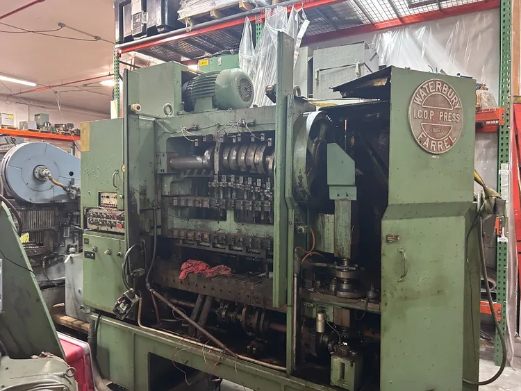 <p>Waterbury Farrel 1212 Round Plunger ICOP Transfer Press<br/>* 12 Operations plus 1 Operation Slave = 13 Stations<br/>* Late model Round Plunger Press<br/>* Motor mounted to the top of frame - Space Saver option. Bonus<br/>* Minster Air Clutch / Brake Combo unit<br/>* Good older probably original controls<br/>* We are in the middle of refurbishing the press. Have pulled the caps off, removed plungers, roller boxes, bearings and will polish all.<br/>* New bronze bearings to be installed.<br/>* Press was purchased from Waterbury as an 8 op machine. Cheap-O only ordered it with 8 Plungers! Top shaft cams and plungers missing - 4 complete stations.<br/>- We can fit the machine out with the missing 4 stations or the buyer can purchase and install. Price to be quoted when interested buyer comes along.<br/><br/>Listed price is for the press as it is. As we progress in the refurbishment, our pricing will increase.</p>