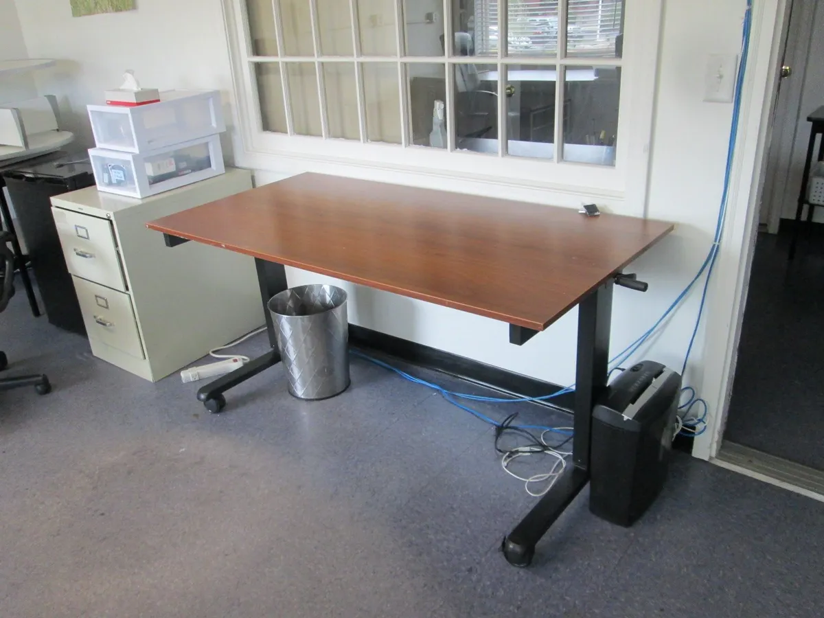 Adjustable Height Stand Up Desk 5ft x 30" Brown Wood Top